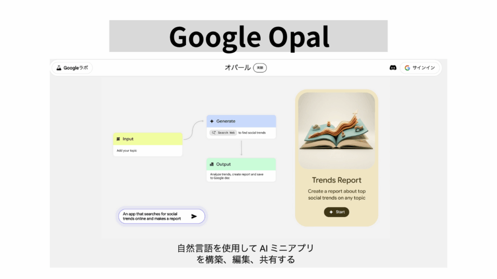 実際、2025年10月7日Googleの新サービス「Opal(オパール)」=アプリを日本でも使えるようになりました!