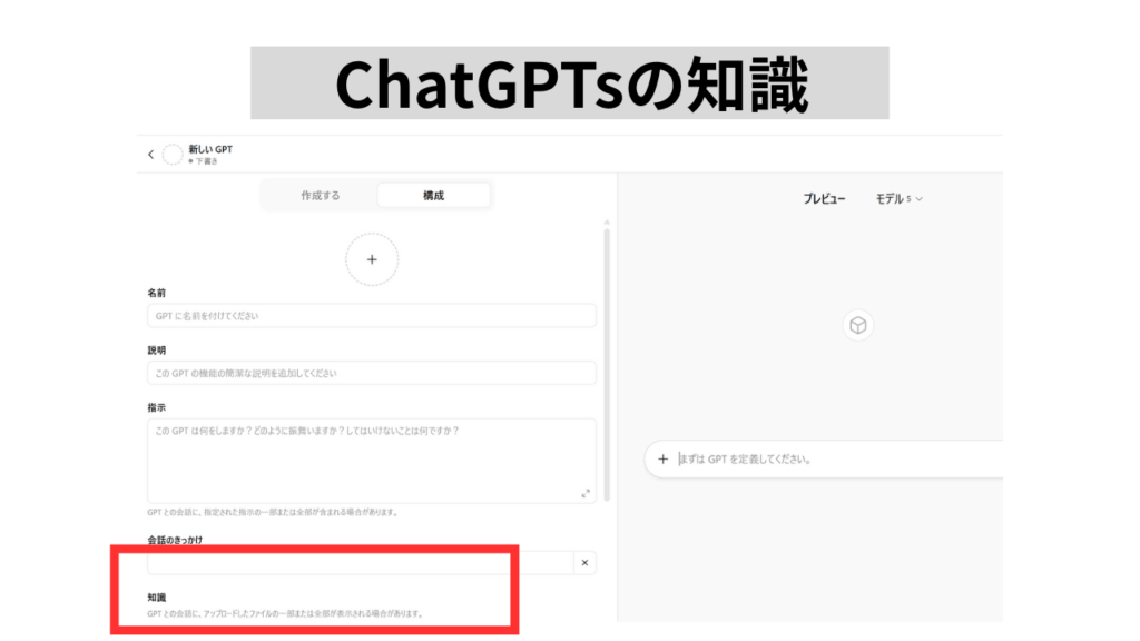 - ChatGPTsの知識にファイルをアップして社内Chatボットとして整備する。