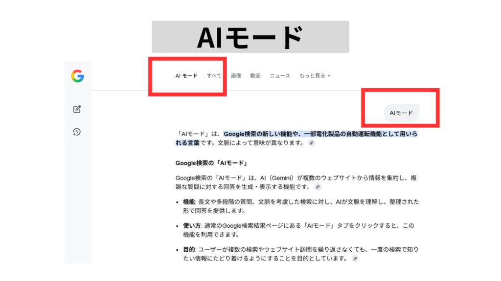 更に、2025年9月9日Google検索に「AIモード」が追加されました。