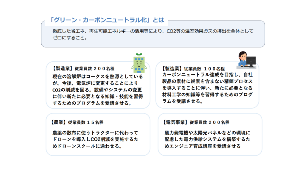 この助成金は、DX(デジタルトランスフォーメーション)やカーボンニュートラル化に伴う社員教育を支援するもので、