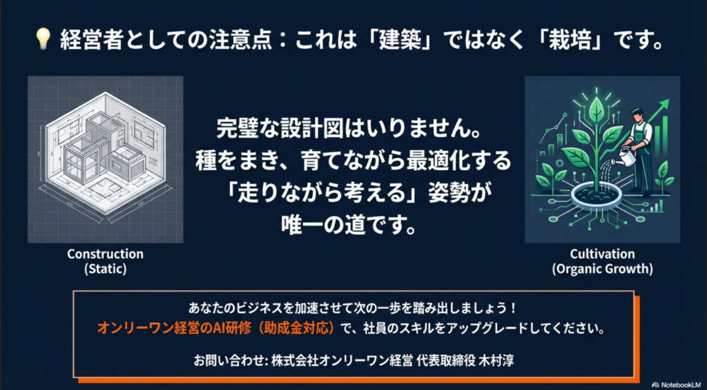 AIの導入は「建築(ビルの)建設」ではなく、「栽培(植物の育成)」に似ています。