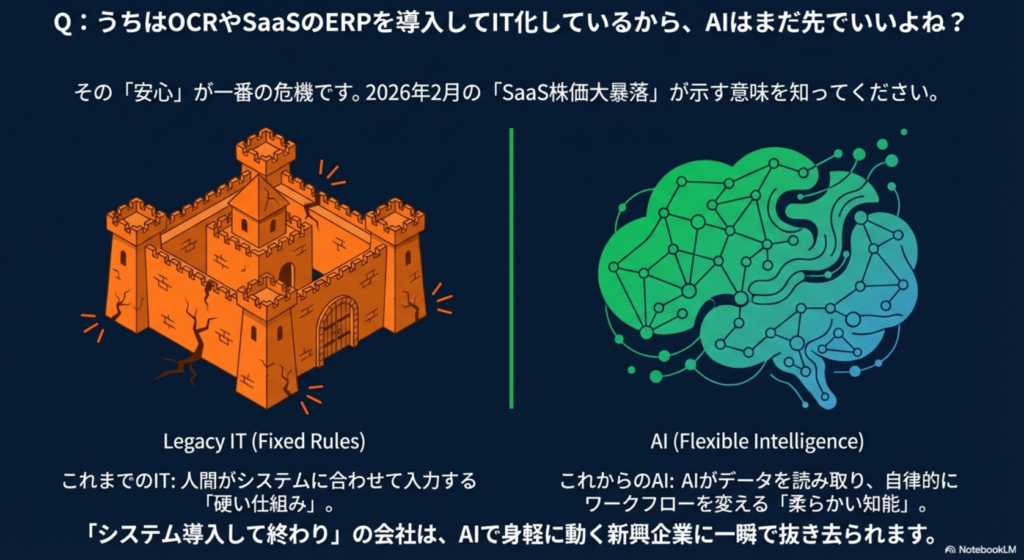 13. Q:うちはOCRやSaaSのERPを導入してIT化しているから、AIはまだ先でいいよね?