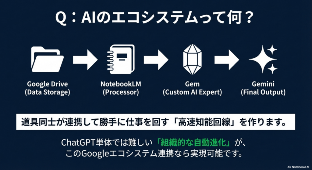 ChatGPTs/Gem/Skill&Knowledge + ドライブ + NotebookLM この組み合わせがあれば、あなたの会社の「ぐちゃぐちゃ」「紙くず」は、そのまま「宝の山」に変わります。