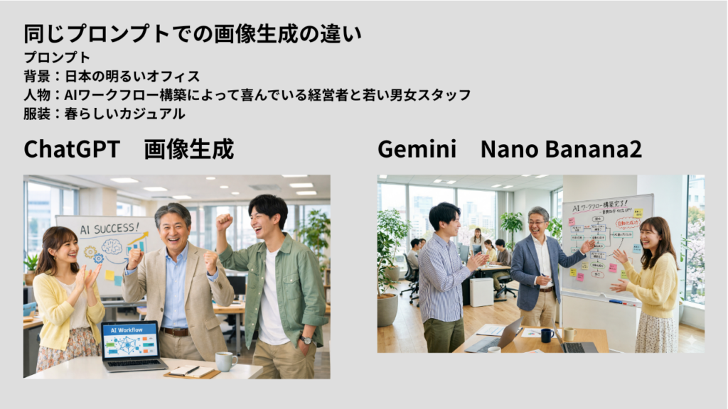 | 画像生成 | DALL-E統合 | Nano Banana Pro | インフォグラフィック生成 | 非対応 |