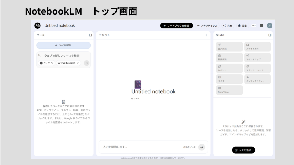 NotebookLMのPC無料版は使っていません。